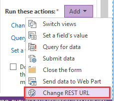 当表单中配置过REST数据源后,查询按钮的Action会神奇地多了一条Change REST URL
